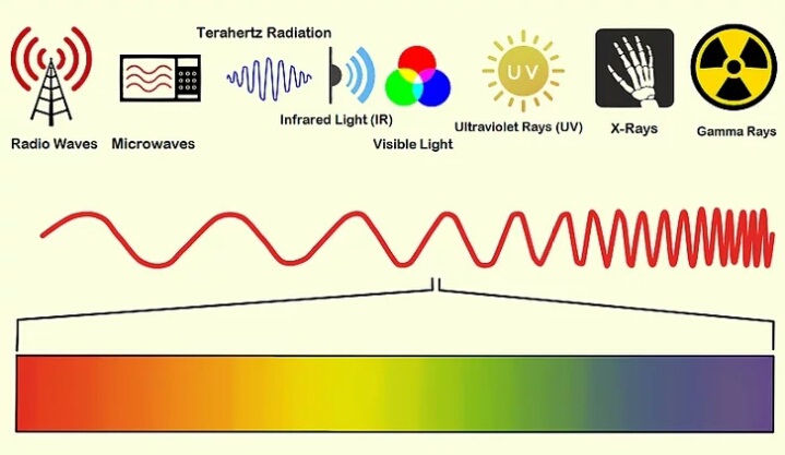 – one of the waves that are propagated by simultaneous periodic variations of electric and magnetic field intensity and that include radio waves, infared, visible light, ultraviolet, x-rays, and gamma rays.